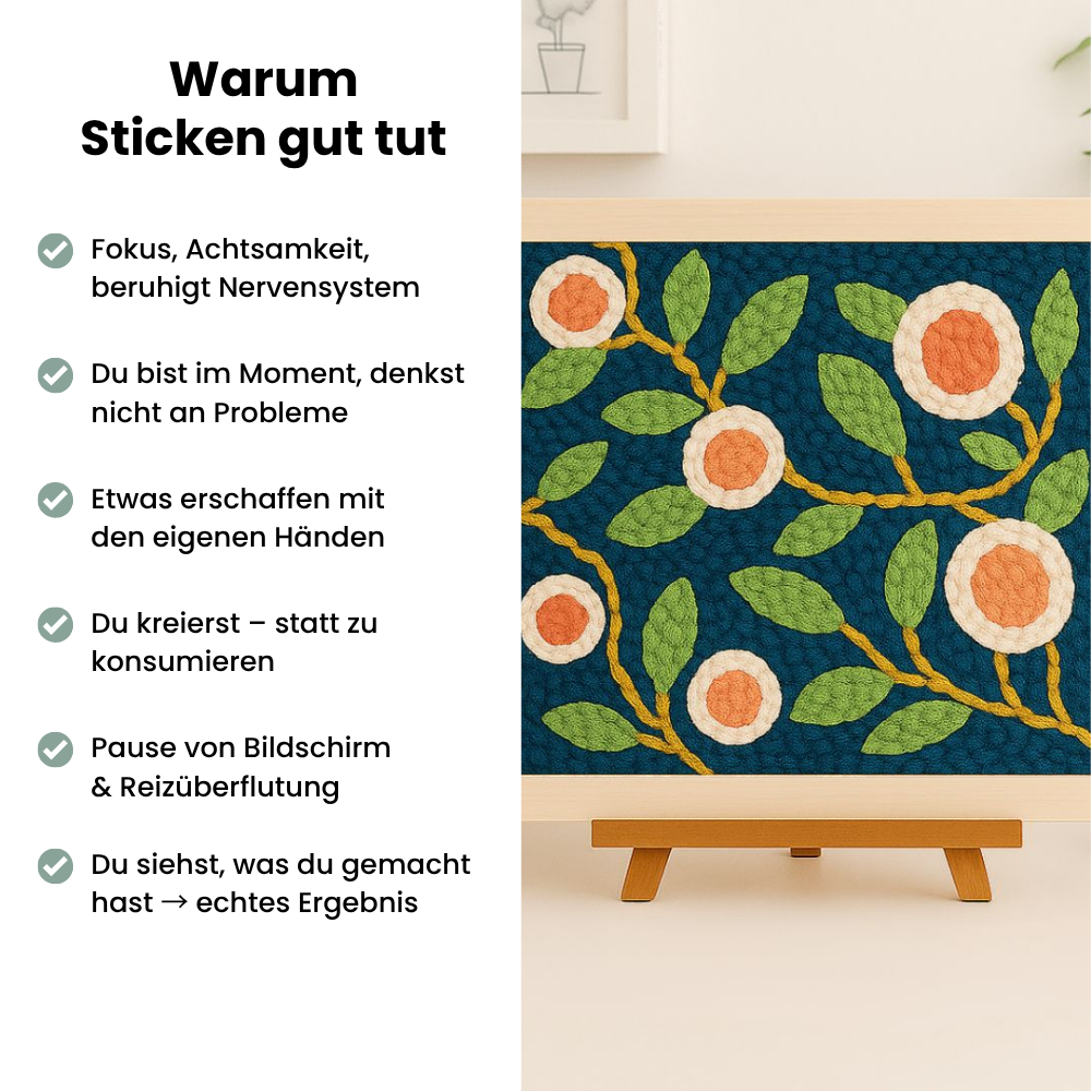 Das DIY-Stickset für Frauen, die sich nach Ruhe sehnen und gerne etwas Schönes mit den eigenen Händen erschaffen.