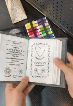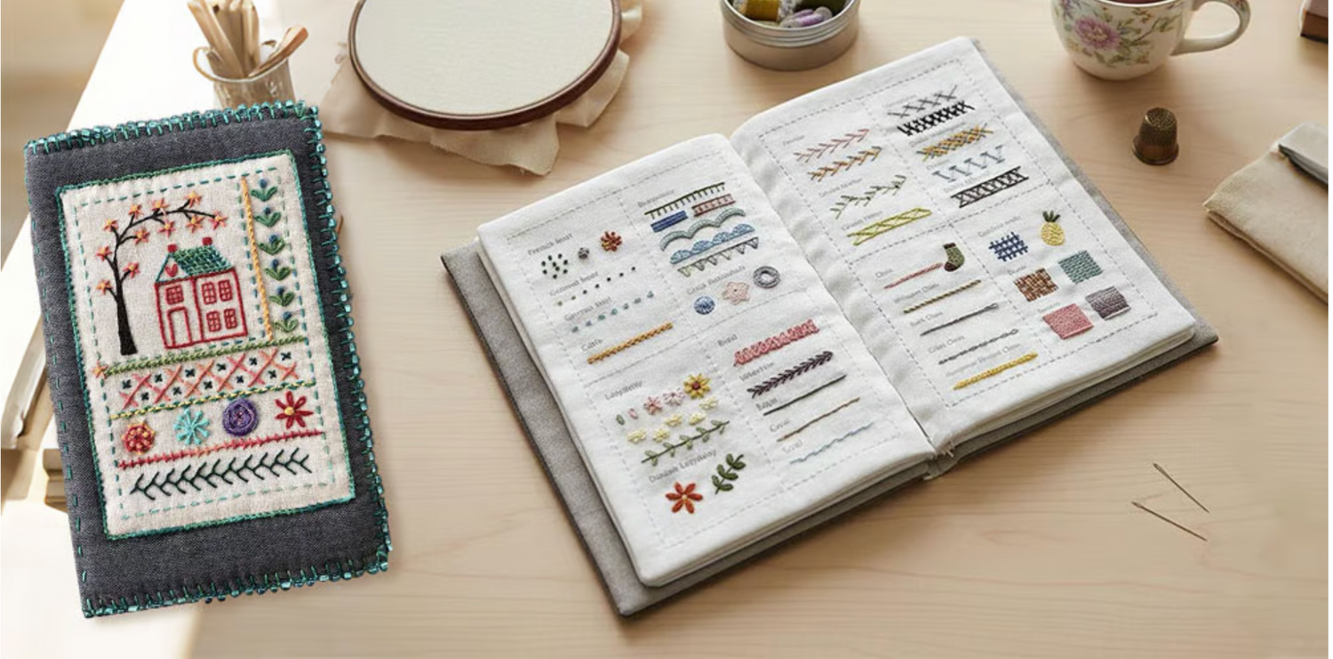 Schlage dein Stickbuch auf einer der liebevoll gestalteten Stoffseiten auf – jede Seite ist bereit für deinen nächsten kreativen Moment.